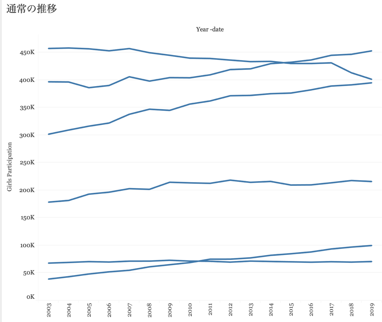 まず通常の時系列推移の線グラフをつくると、こんな感じになりました。