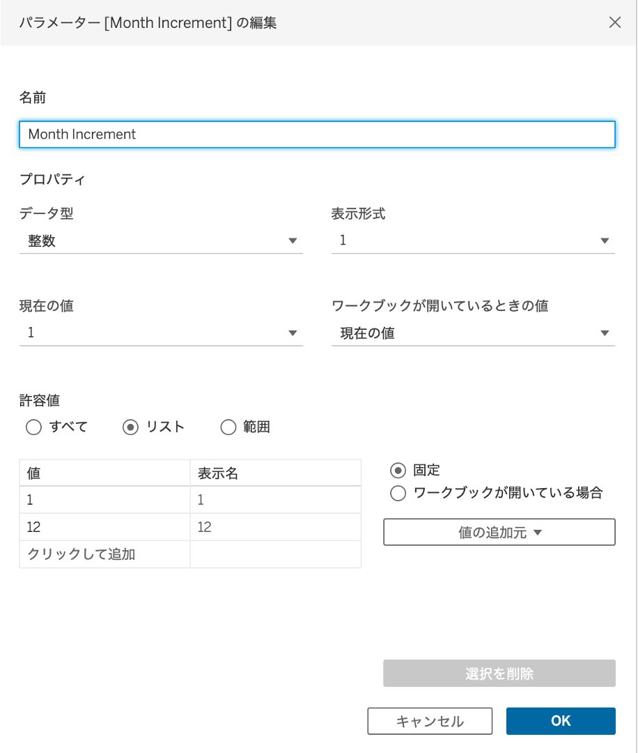 Monnth Increment ※パラメーター