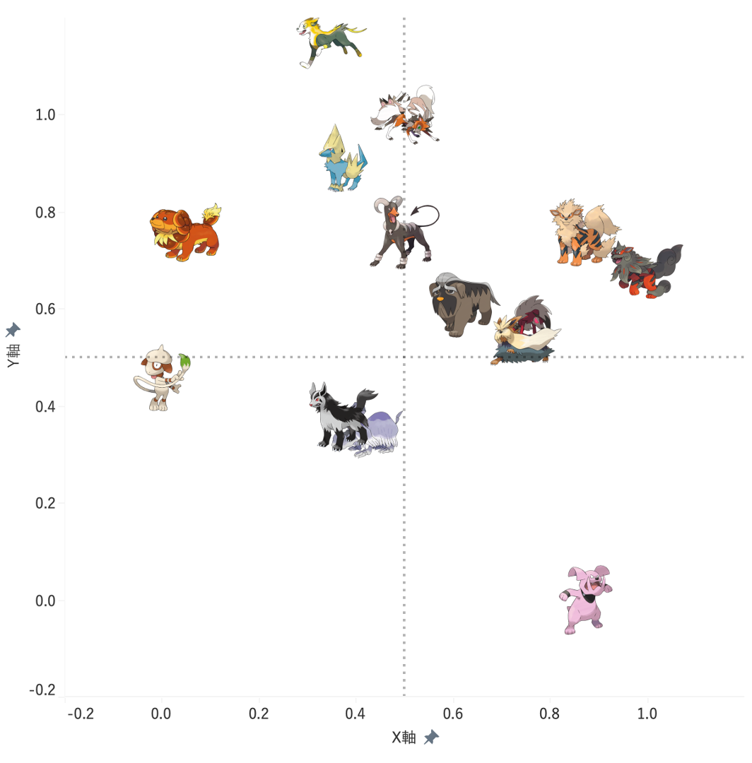 これをX軸・Y軸それぞれで計算して可視化した散布図が以下です。