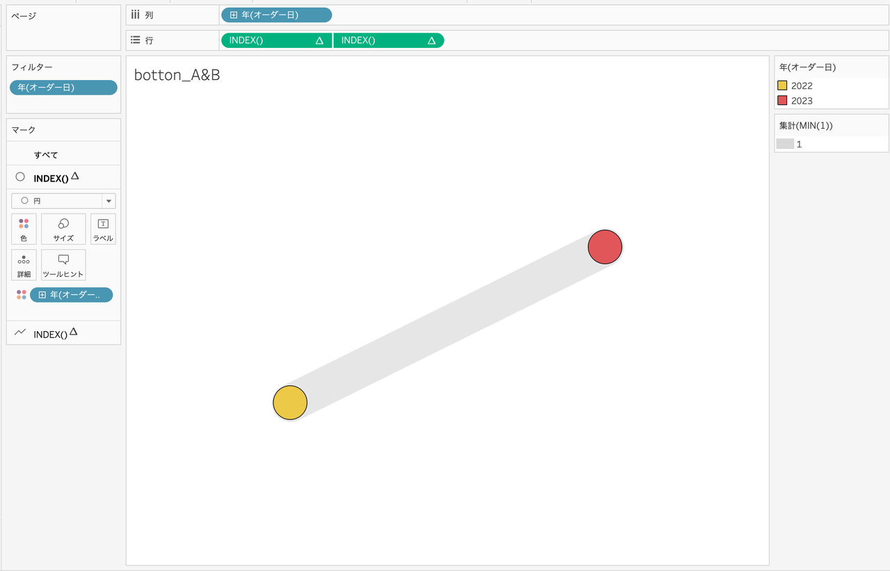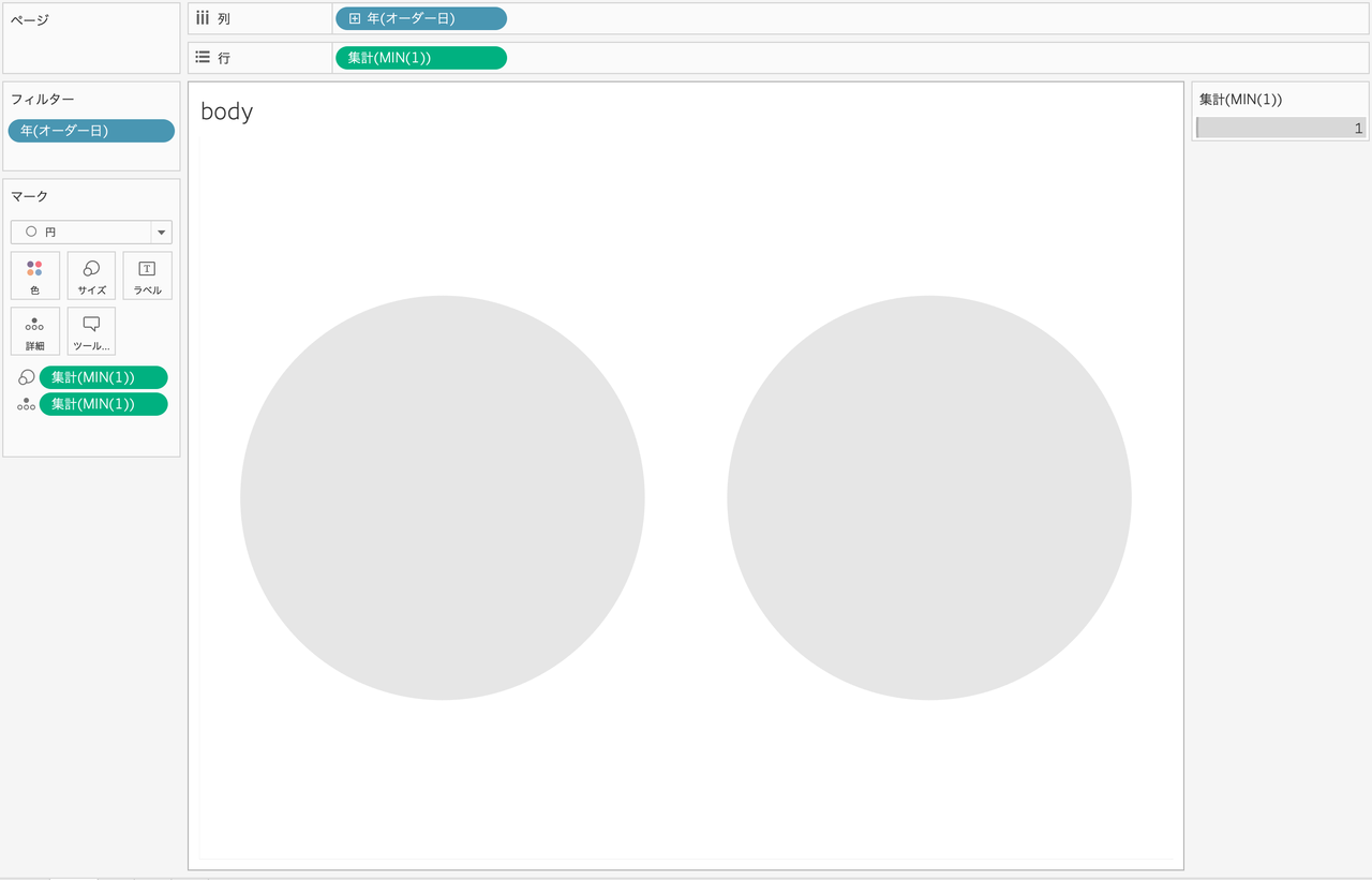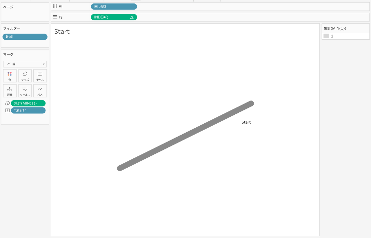 こちらは平行線になるようにMIN(1)をメジャーとして使用し、横線と縦線をそれぞれ作成します。