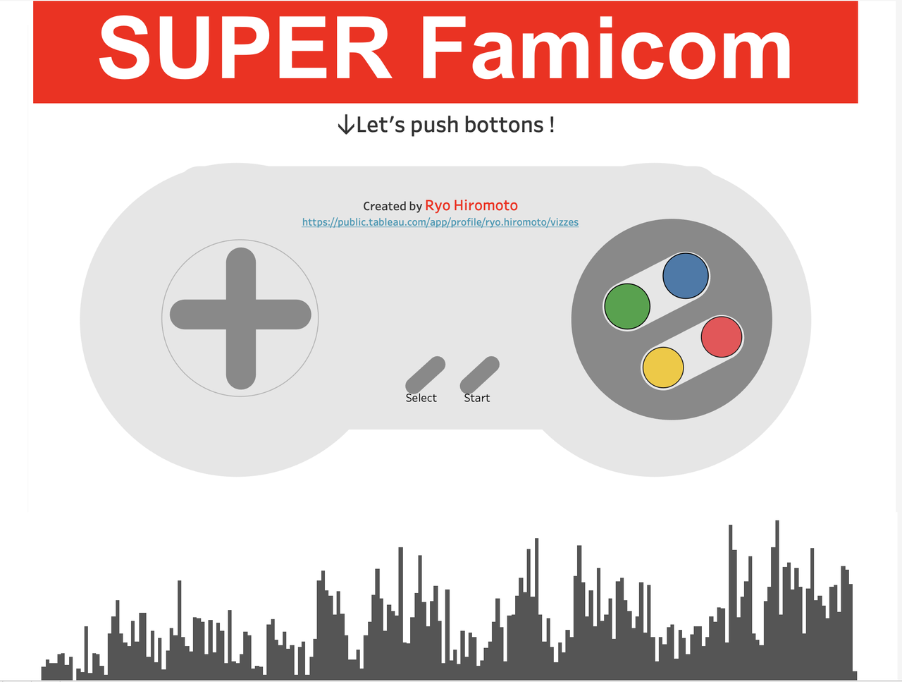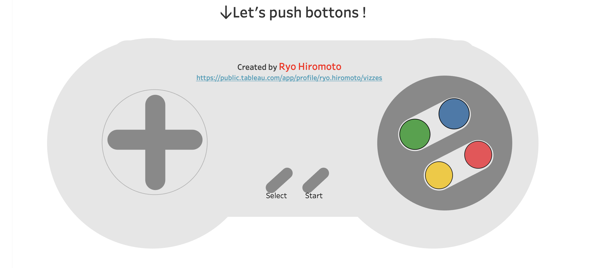 今回はTableauできる表現を組み合わせて、スーパーファミコンのコントローラー風のVizを作成してみました。