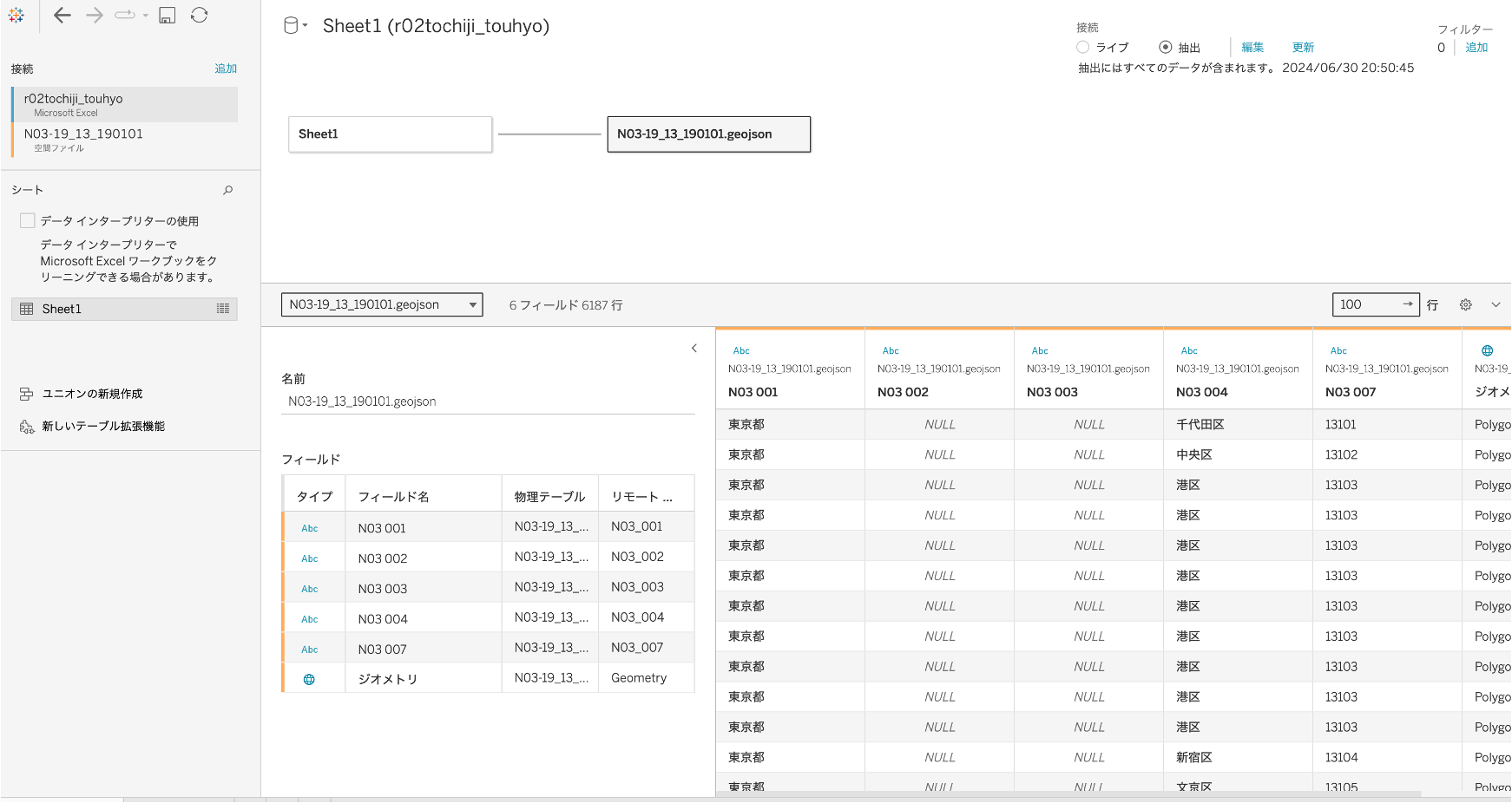Tableauにも標準搭載されているポリゴンデータがありますが、今回は「国土数値情報ダウンロードサイト」に掲載されているポリゴンデータを使用して、東京都市区町村のデータを可視化してみました。