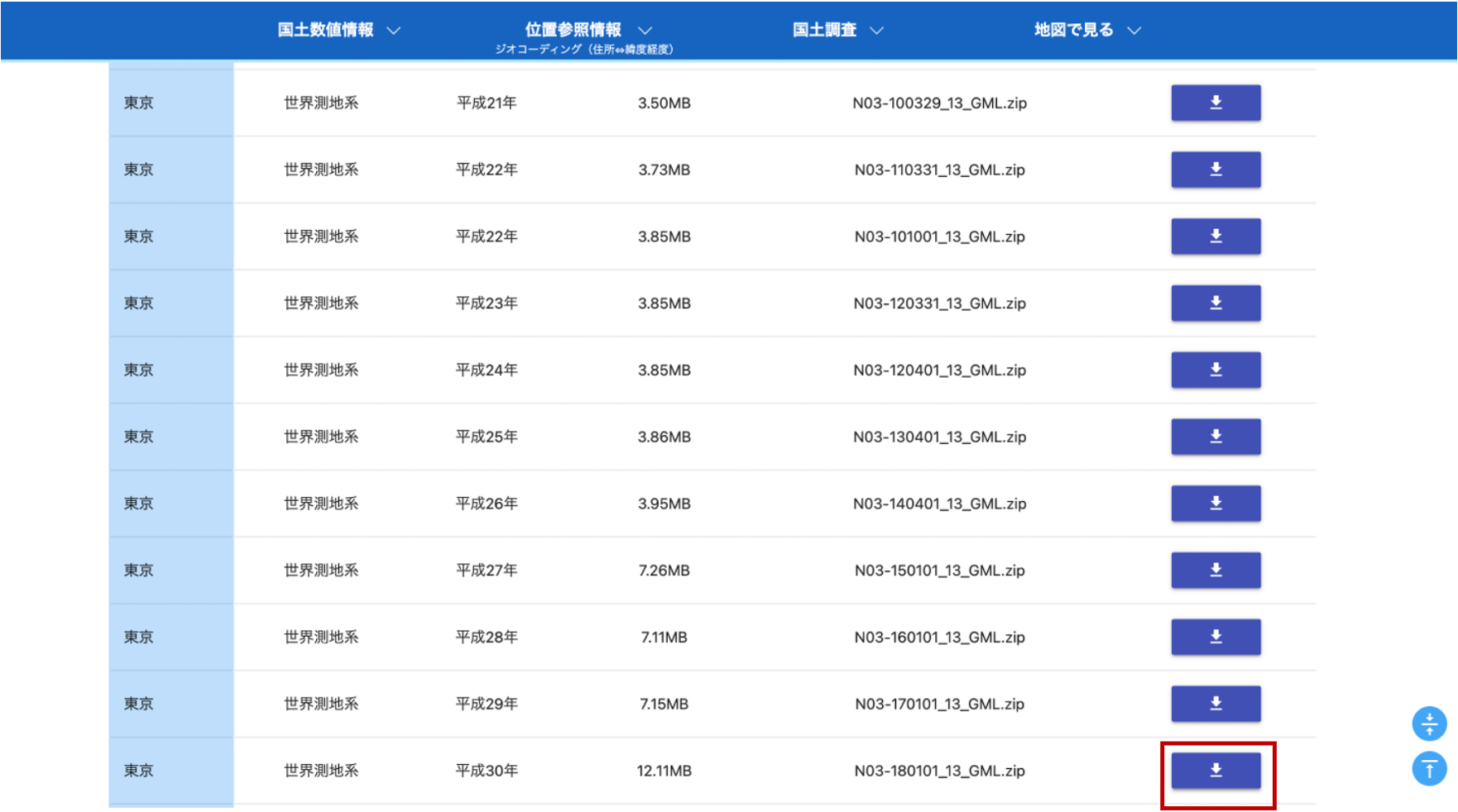 - 国土数値情報ダウンロードサイト」にアクセスし、東京都のファイルをダウンロードする(アンケートはスキップすることも可能)