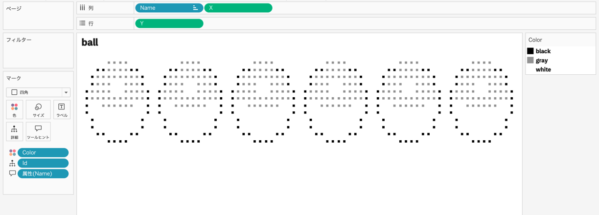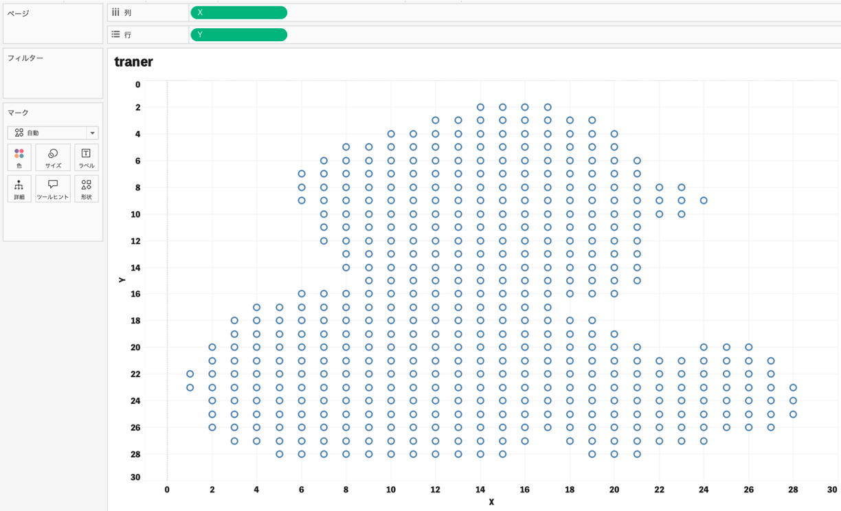 以前、座標データを用いてピカチュウを再現したことがあります(詳細はTableauでいろいろなピカチュウをつくってみたをご参照ください)が、それと同じ要領で作成します。